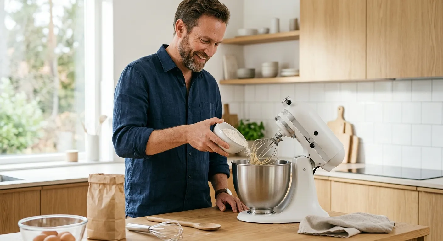 KitchenAid Artisan sopii käyttäjälle, jolle yleiskone on sekä työkalu että keittiön kiinteä elementti. Tämä on yleisin ostajaprofiili: henkilö, joka leipoo 2–4 kertaa viikossa ja arvostaa koneen pitkäikäisyyttä. 300 watin moottori riittää normaaliin leivontaan, kakuista kekseistä pulliin ja kevyisiin juurileipätaikinoihin. Laaja lisävarusteekosysteemi kasvattaa koneen käyttömahdollisuuksia vuosien kuluessa. KitchenAidin lisävarusteyhteensopivuus ulottuu vuosikymmenten taakse, ja uudemmat lisäosat sopivat usein myös vanhempiin malleihin.